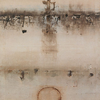 The meditative Zen quality that transpires his speech, emoting silence is exemplified in his work best, as silence is eternal and meaningful in itself, from this point one does tend to identify the mysterious motifs, the highly personalised hieroglyphs in Gaitonde's canvasses with the manifestation of intuitions, invested in their His work is influenced by Zen philosophy and ancient calligraphy.